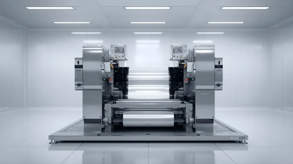- Rebobinador e desbobinador: Para manuseio eficaz dos rolos de material e produto final.
